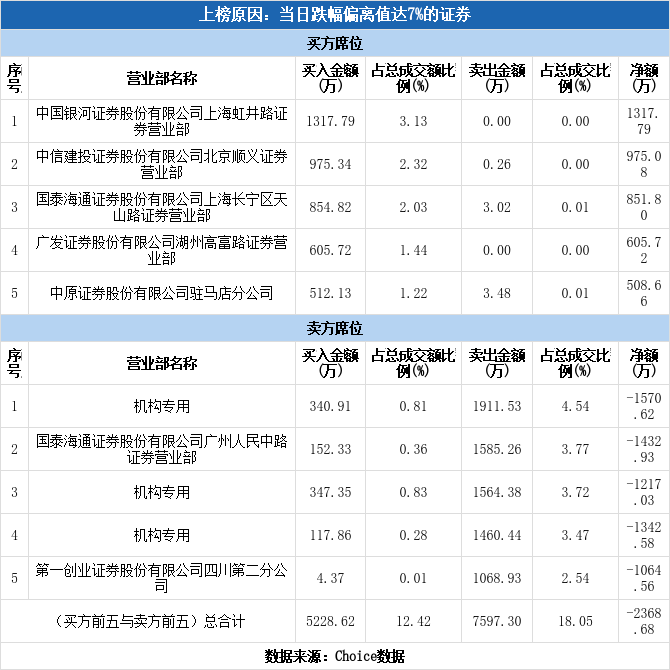 多主力现身龙虎榜,小崧股份跌停(12-18)