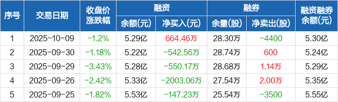龙大美食:融资净买入664.46万元,融资余额5.29亿元(10-09)