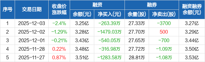龙大美食:融资余额3.25亿元,创近一年新低(12-03)
