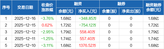 好利科技:融资净偿还348.85万元,融资余额1.68亿元(12-16)