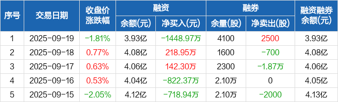 雄韬股份:融资净偿还1448.97万元,融资余额3.93亿元(09-19)