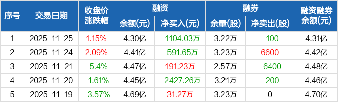 雄韬股份:融资净偿还1104.03万元,融资余额4.3亿元(11-25)