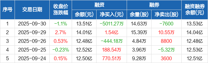 国信证券:融资净偿还5011.27万元,融资余额13.51亿元(09-30)