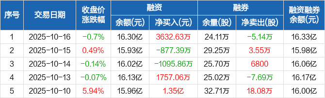 国信证券融资融券信息显示,2025年10月16日融资净买入3632.63万元;融资余额16.3亿元,创历史新高,较前一日增加2.28%。