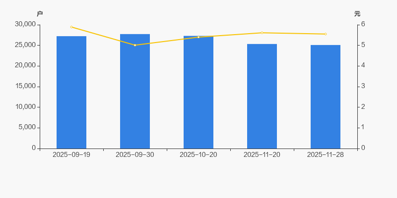 自2025年9月30日以来,公司股东户数连续3期下降,截至目前减幅为9.54%。2025年9月30日至2025年11月28日区间股价上涨10.78%。