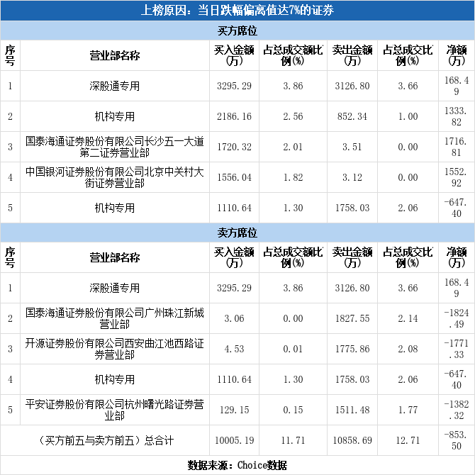 多主力现身龙虎榜,昇兴股份跌停(12-16)