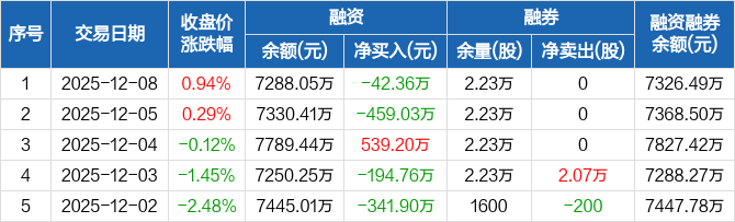 奥赛康:融资净偿还42.36万元,融资余额7288.05万元(12-08)