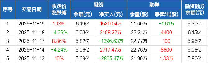 永兴材料:融资净买入1580.04万元,融资余额6.19亿元(11-19)