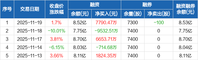 天际股份:融资净买入7790.47万元,融资余额8.52亿元(11-19)