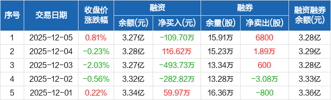 浙江建投:融资净偿还109.7万元,融资余额3.27亿元(12-05)