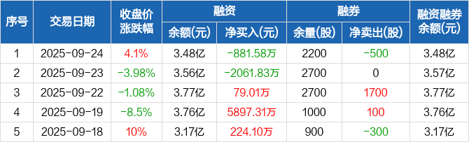 国恩股份:融资净偿还881.58万元,融资余额3.48亿元(09-24)