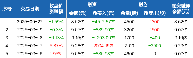 中坚科技:连续3日融资净偿还累计6645.47万元(09-22)