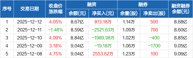 中坚科技:融资净买入813.18万元,融资余额8.67亿元(12-12)
