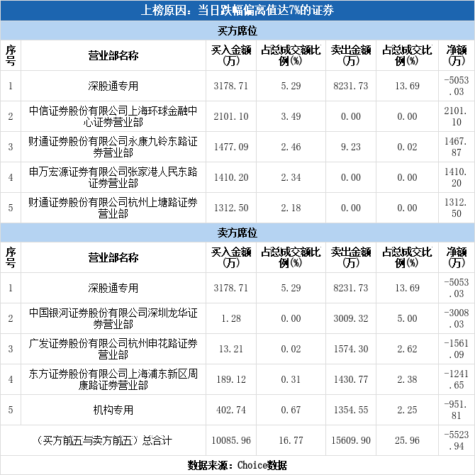 多主力现身龙虎榜,中坚科技跌停(12-15)