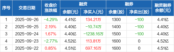 通宇通讯:融资净买入134.21万元,融资余额4.41亿元(09-26)