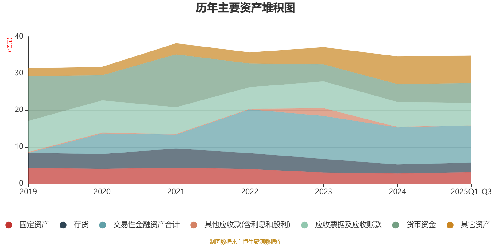 资产重大变化方面,截至2025年三季度末,公司应收票据及应收账款较上年末减少10.07%,占公司总资产比重下降2.09个百分点;一年内到期的非流动资产较上年末增加116.66%,占公司总资产比重上升1.8个百分点;货币资金较上年末增加11.28%,占公司总资产比重上升1.48个百分点;在建工程合计较上年末减少97.08%,占公司总资产比重下降1.39个百分点。