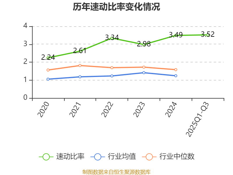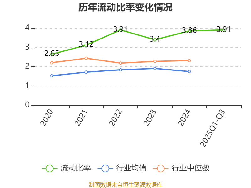 2025年前三季度,公司流动比率为3.91,速动比率为3.52。