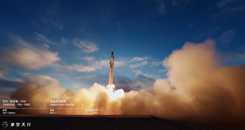 11月25日上午,四川凌空天行科技有限公司(下称“四川凌空”)在其微信公众号上发布了一则《驭空戟-1000高超声速导弹发布》的消息。文中嵌入的演示视频显示,驭空戟-1000高超声速导弹支持500至1300公里射程、5—7马赫飞行速度及360秒动力巡航时间。该导弹似乎具备自动识别目标、躲避威胁等特性,可通过陆基发射车部署,可针对海上移动平台和各类舰艇实施打击。
