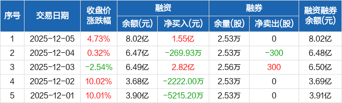 通宇通讯:融资余额8.02亿元,创历史新高(12-05)