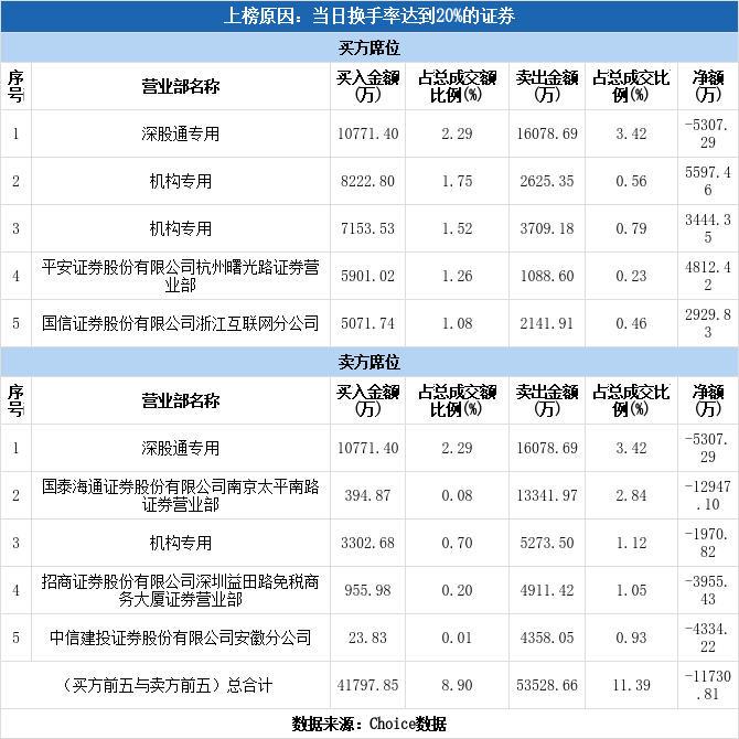 多主力现身龙虎榜,通宇通讯换手率达45.54%(12-09)