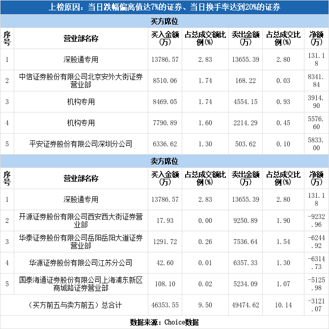 多主力现身龙虎榜,通宇通讯跌停(12-17)