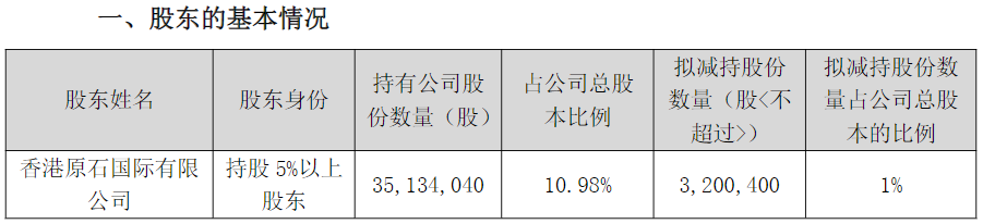 环球印务于2016年6月8日上市,香港原石当时持有1875万股公司股份,占上市公司总股本比例为18.75%。2022年12 月,环球印务实施了非公开发行股票,导致其总股本大幅增加,而香港原石未参加本次股票发行的认购,导致其持股比例被动稀释。截至目前,香港原石持有环球印务3513.404万股股份,占公司总股本比例的10.98%,仍为公司的第二大股东。