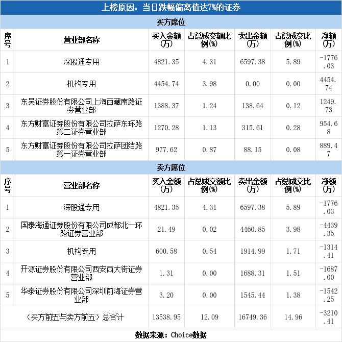 今日龙虎榜单上出现了深股通的身影,占据了买一、卖一的位置,净卖出1776.03万元,占当日成交总额的1.59%。