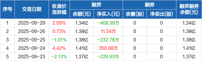 丰元股份:融资净偿还468.99万元,融资余额1.34亿元(09-29)