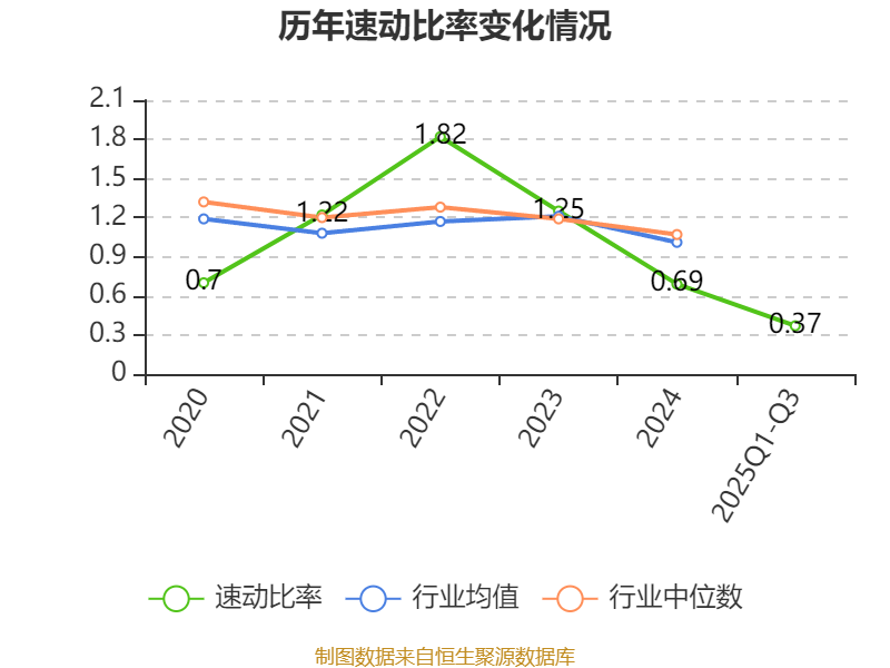 2025年前三季度,公司流动比率为0.61,速动比率为0.37。
