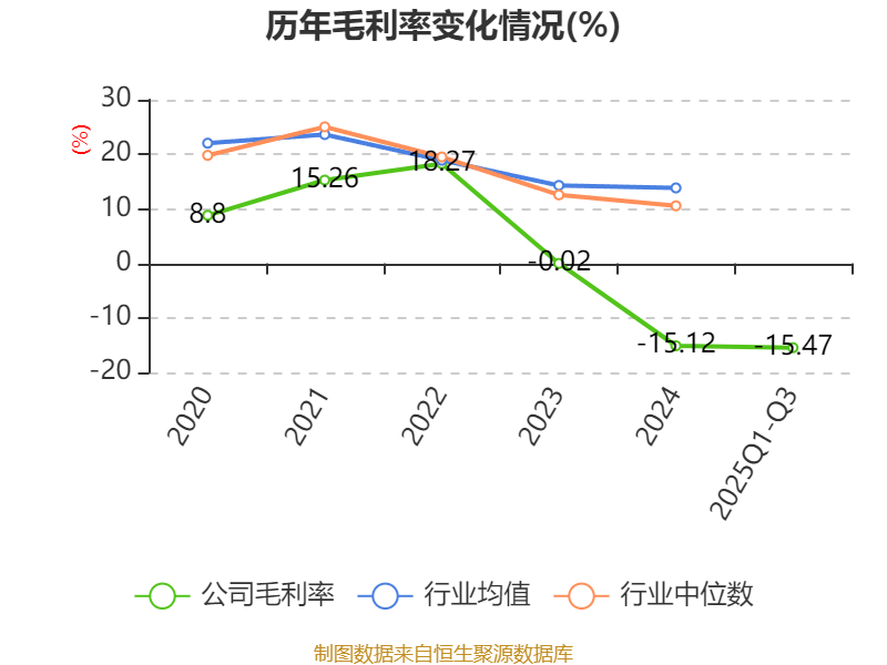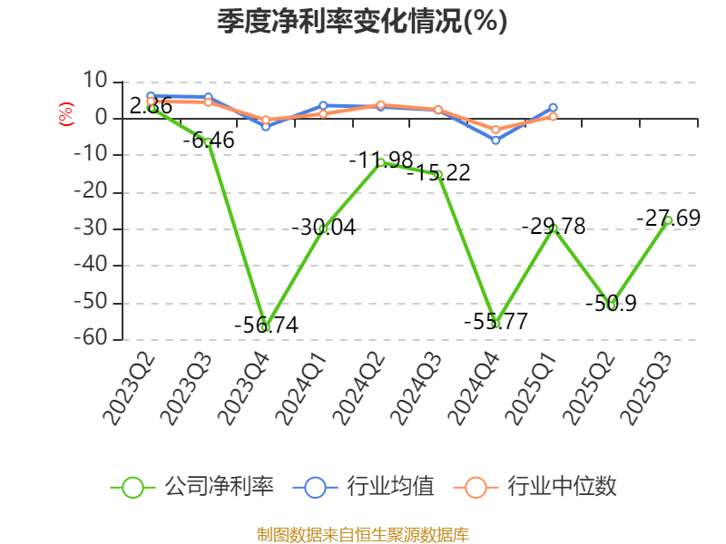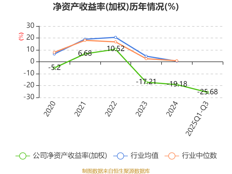 盈利能力方面, 2025年前三季度公司加权平均净资产收益率为-25.68%,同比下降19.56个百分点。公司2025年前三季度投入资本回报率为-8.4%,较上年同期下降5.36个百分点。