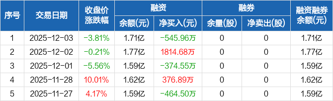 丰元股份:融资净偿还545.96万元,融资余额1.71亿元(12-03)