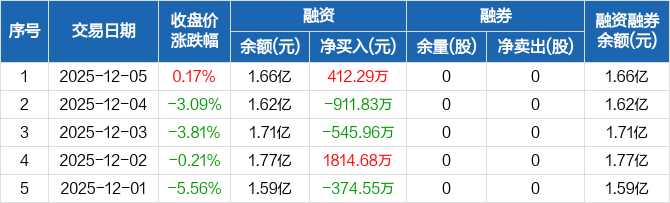丰元股份:融资净买入412.29万元,融资余额1.66亿元(12-05)