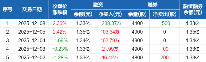 山东赫达:融资净偿还238.37万元,融资余额1.33亿元(12-08)
