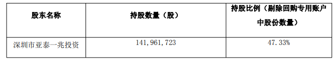 截至公告披露日,亚泰一兆持有公司股份1.42亿股,占公司剔除回购专用账户中股份数量后总股本的47.33%,股份来源为公司首次公开发行股票前所持有的股份、受让平顶山中兆企业管理有限公司所持部分股份。