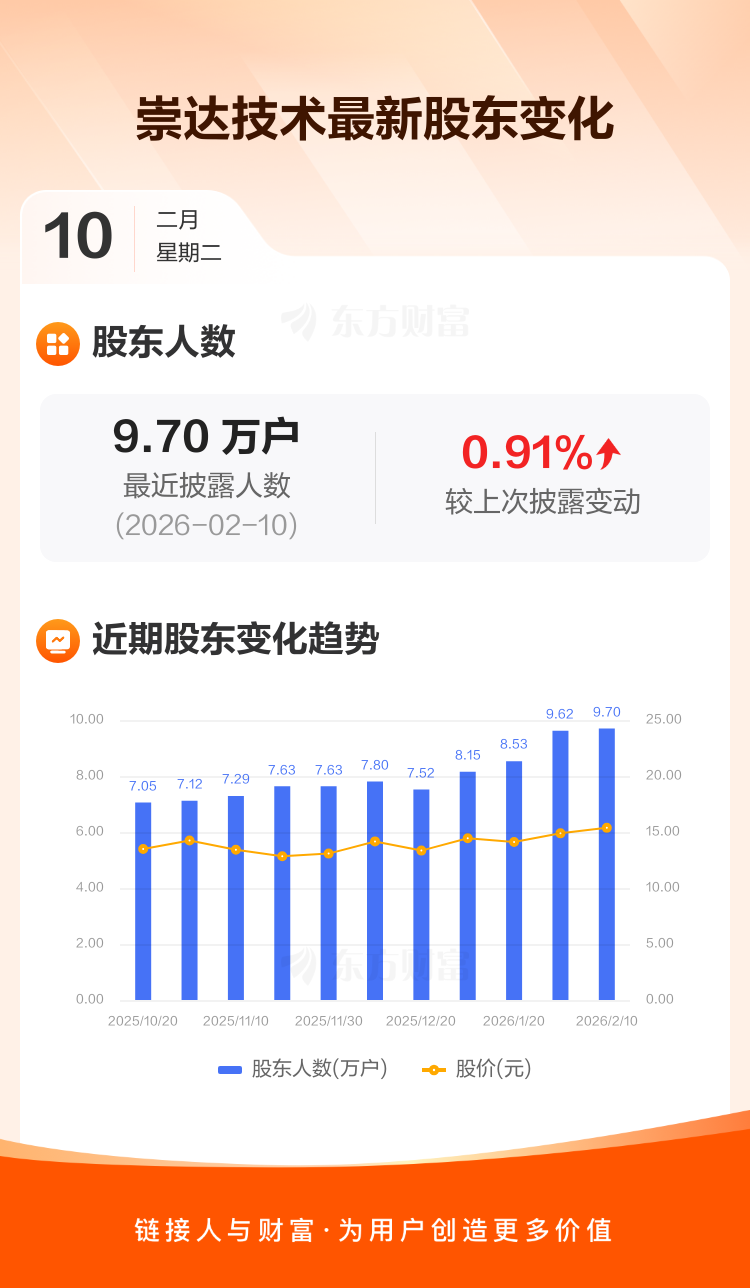 崇达技术:截至2月10日最新股东户数9.70万户,较上期增加0.91%