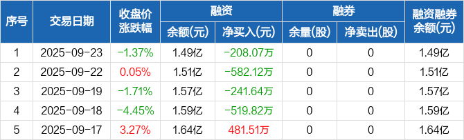 和胜股份:连续4日融资净偿还累计1551.65万元(09-23)