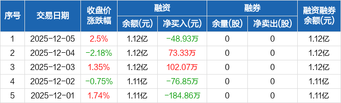 和胜股份:融资净偿还48.93万元,融资余额1.12亿元(12-05)