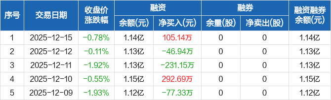 和胜股份:融资净买入105.14万元,融资余额1.14亿元(12-15)