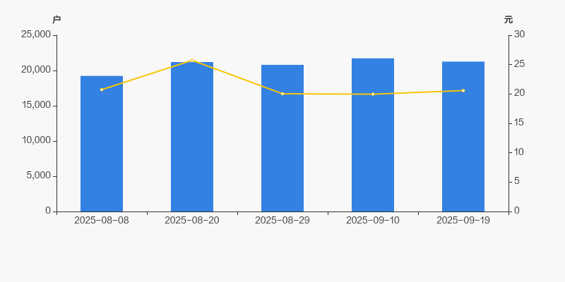 2025年8月8日至今,公司股东户数显著增长,区间涨幅为10.54%。2025年8月8日至2025年9月19日区间股价下降0.77%。