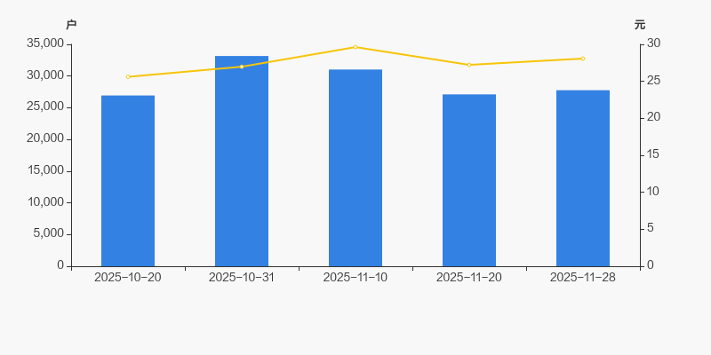 2025年10月20日至今,公司股东户数有所增长,区间涨幅为3.08%。2025年10月20日至2025年11月28日区间股价上涨9.64%。