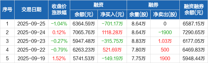 裕同科技:融资净偿还701.17万元,融资余额6364.59万元(09-25)