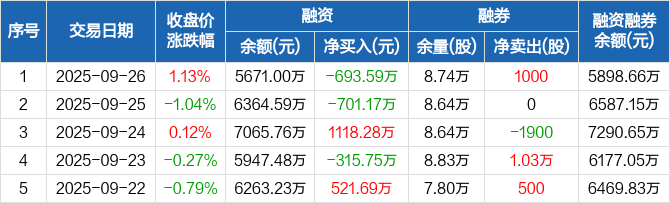 裕同科技:融资净偿还693.59万元,融资余额5671万元(09-26)