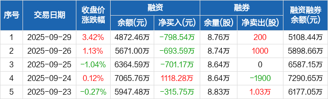 裕同科技:连续3日融资净偿还累计2193.3万元(09-29)