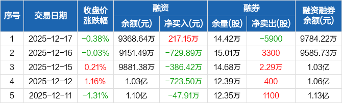 裕同科技:融资净买入217.15万元,融资余额9368.64万元(12-17)