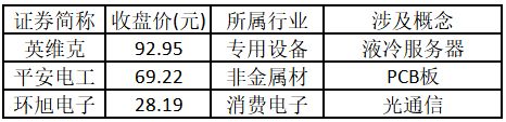 从涨势强度来看,涨停板个股中,股价创出历史新高的个股共有3只,包括英维克、平安电工、环旭电子。