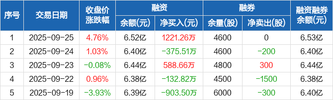 道恩股份:融资净买入1221.26万元,融资余额6.52亿元(09-25)