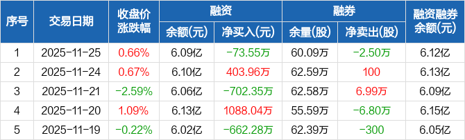 张家港行融资融券信息显示,2025年11月25日融资净偿还73.55万元;融资余额6.09亿元,较前一日下降0.12%。