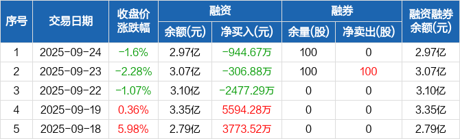 泰嘉股份:连续3日融资净偿还累计3728.83万元(09-24)