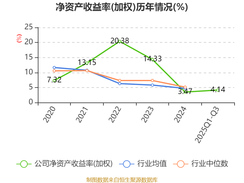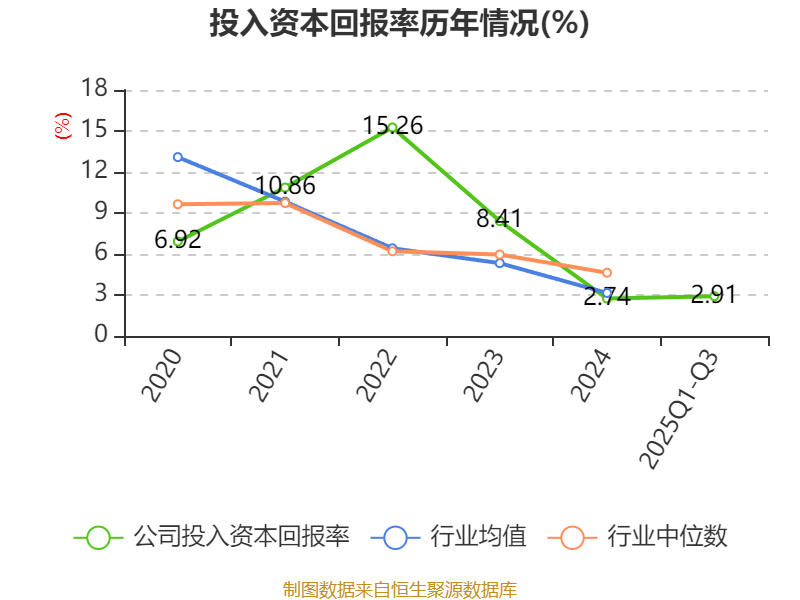 盈利能力方面, 2025年前三季度公司加权平均净资产收益率为4.14%,同比下降0.52个百分点。公司2025年前三季度投入资本回报率为2.91%,较上年同期上升0.02个百分点。