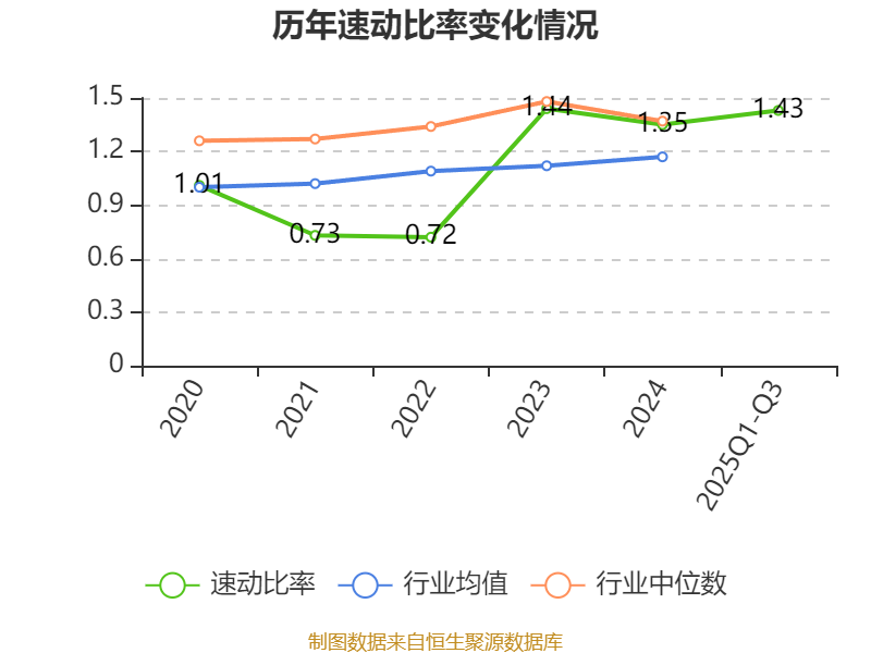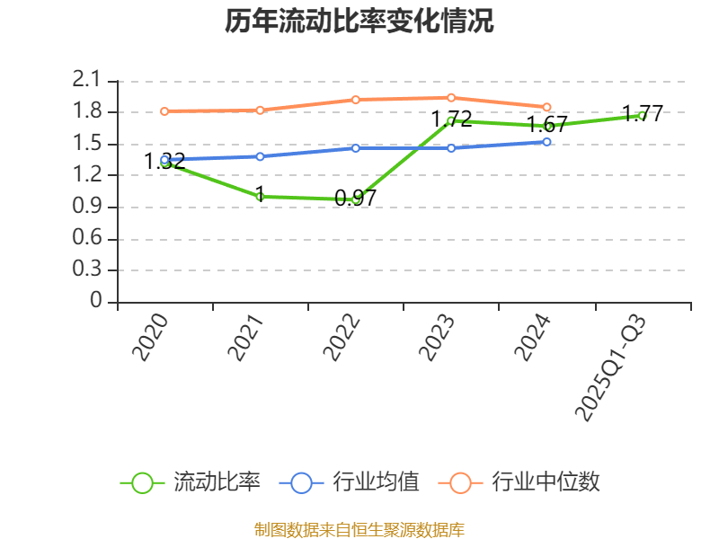 2025年前三季度,公司流动比率为1.77,速动比率为1.43。
